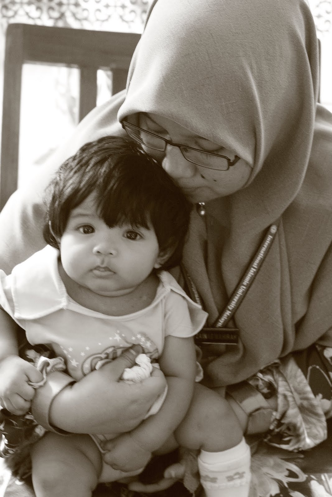 My morning 'routine' on the way to the bus stop to school is to stop for a while at the nursery next to my 'rumah sewa' to observe the babies and kids there. Ambil semangat to start a cheerful day =). Just now, after returning from work, 'kidnap' one of the babies for a while...hihi. Comel. Hilang stress kejap...
